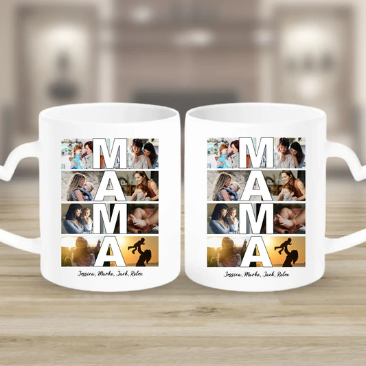 Personalisierte Fotokollage Mama - Herz Griff Tasse